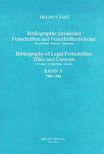 Bibliographie Juristischer Festschriften und Festschriftbeiträge Deutschland, Schweiz, Österreich. Bibliography of Legal Festschriften Titels and ... Festschriftbeiträge. Bd 5. 1980-1984: Bd 5 PDF Download